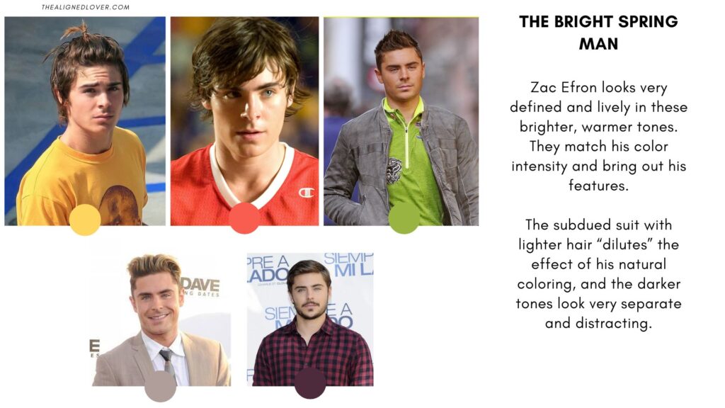 Zac Efron is a classic Bright Spring, and we can see how the right colors make a huge difference: