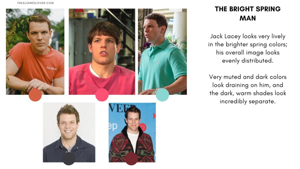 - Brighter, zingy hues bring out the undertones in his hair, which aren’t always noticeable. His skin looks even and healthy, and his eyes pop.