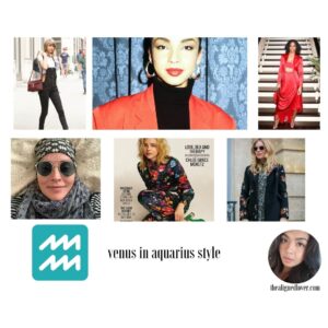 - Venus in Aquarius Styleby NonaI love Venus in Aquarius style as it appeals to my love of bold, decivise, but clashing aspects finessed into a unique and effervescent outfit that reads bold but not heavy. Check out my video for more details outlining the Venus in Aquarius style. xx Nona