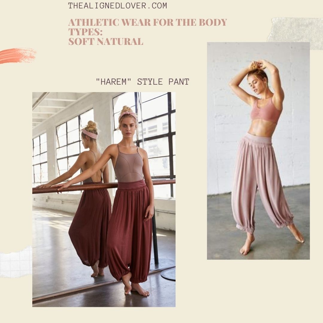 Here is my video detailing some ideas for gym outfits that will accomodate the Soft Natural body type. Photos below.