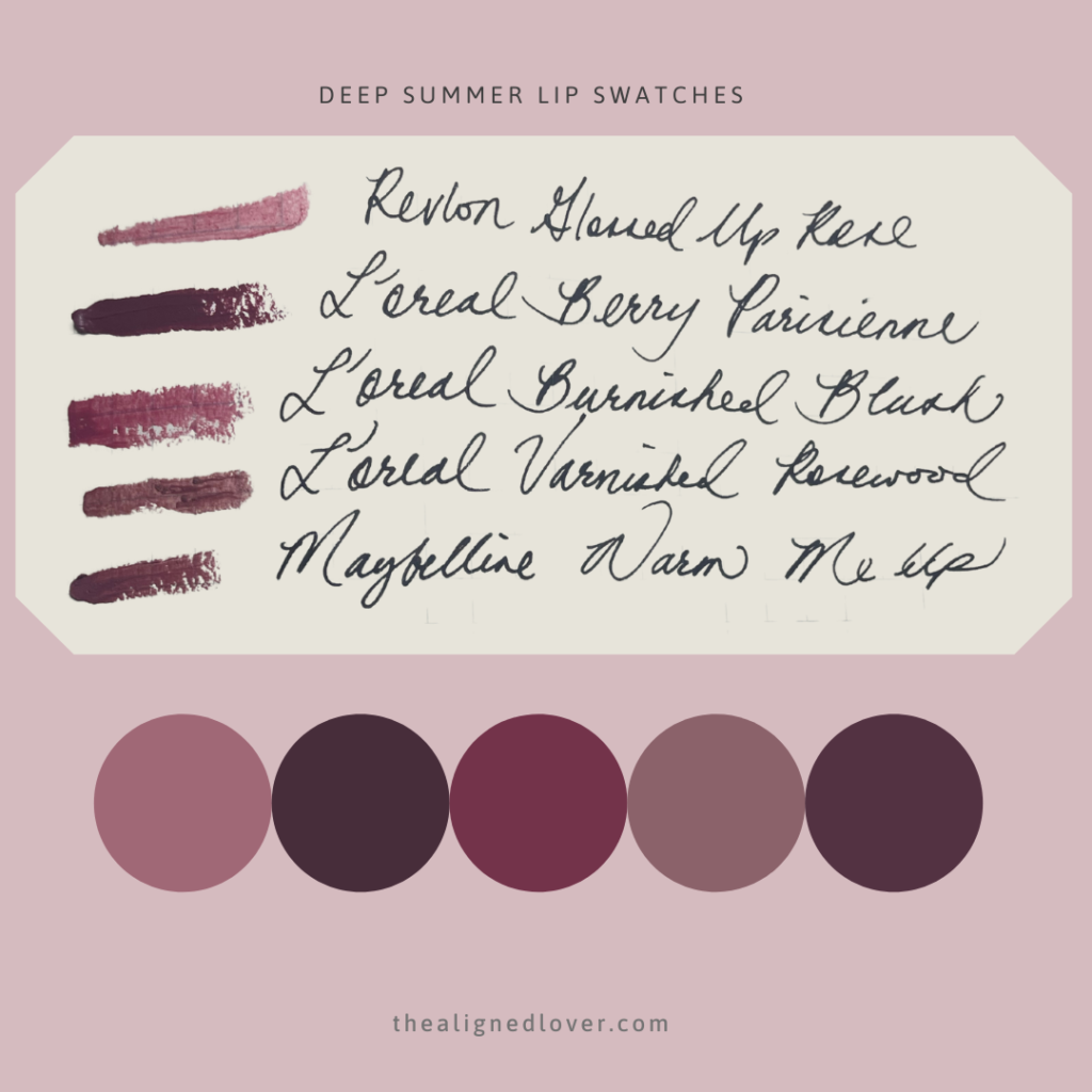 Recently, I have been sharing more content on Seasonal Color Analysis and wanted to start off my video series by giving you a few lipstick swatches of my favorite Deep Summer friendly drugstore lip shades.