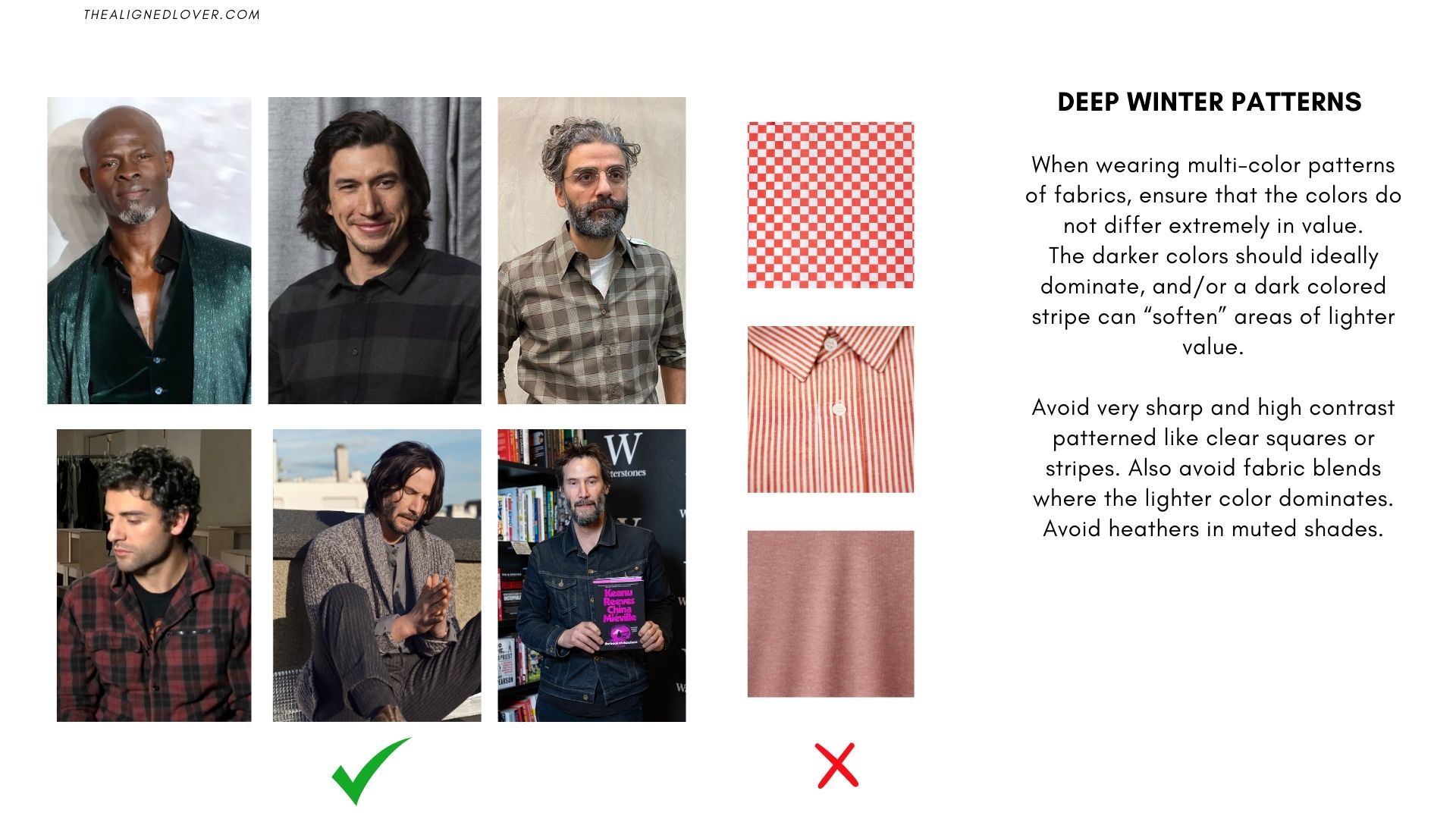 Deep Winters look best in bold but smooth patterns. Keep in mind: