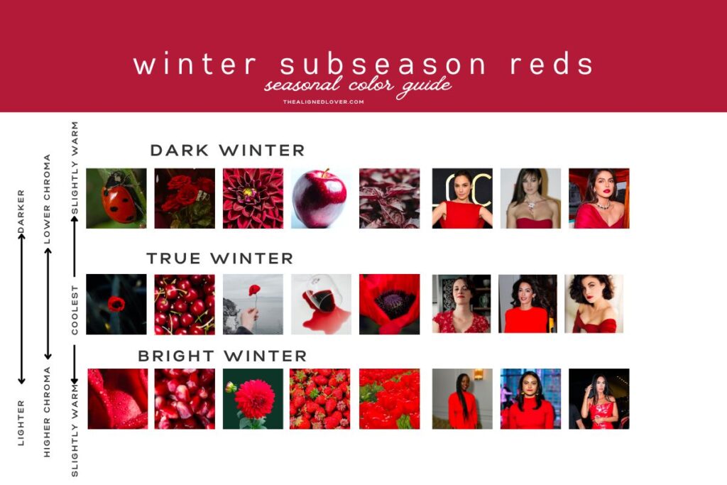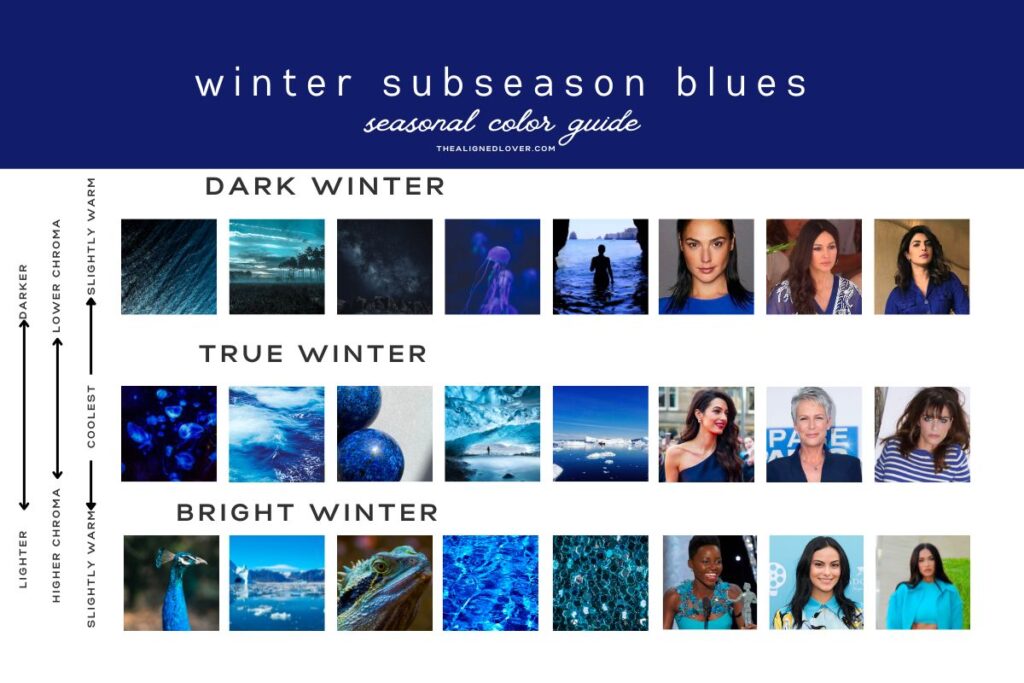 Welcome back to my seasonal color exploration series. Today we’ll compare the sub-seasons of Winter (Deep Winter/Dark Winter, True Winter/Cool Winter, and Bright Winter/Clear Winter) and observe the progression of dominant color qualities throughout. Scroll to the bottom for the full video on my YouTube channel. To help you decode ANY color system, check out my virtual guide on navigating the world of personal color: https://thealignedlover.com/product/virtual-guide-navigating-the-world-of-seasonal-color/