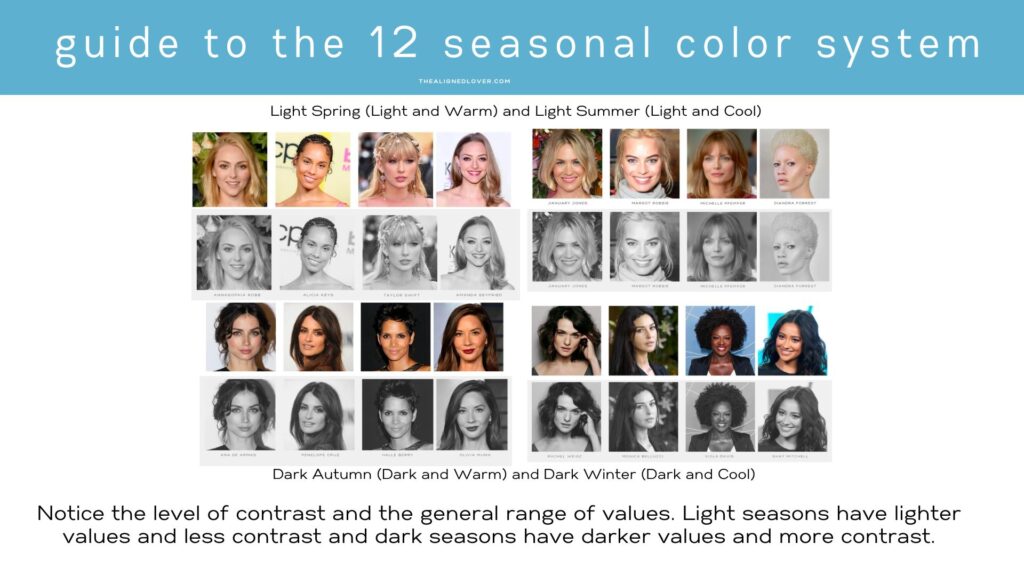 Light and Dark Dominated Seasons: Light Spring, Light Summer, Dark Autumn, and Dark Winter
