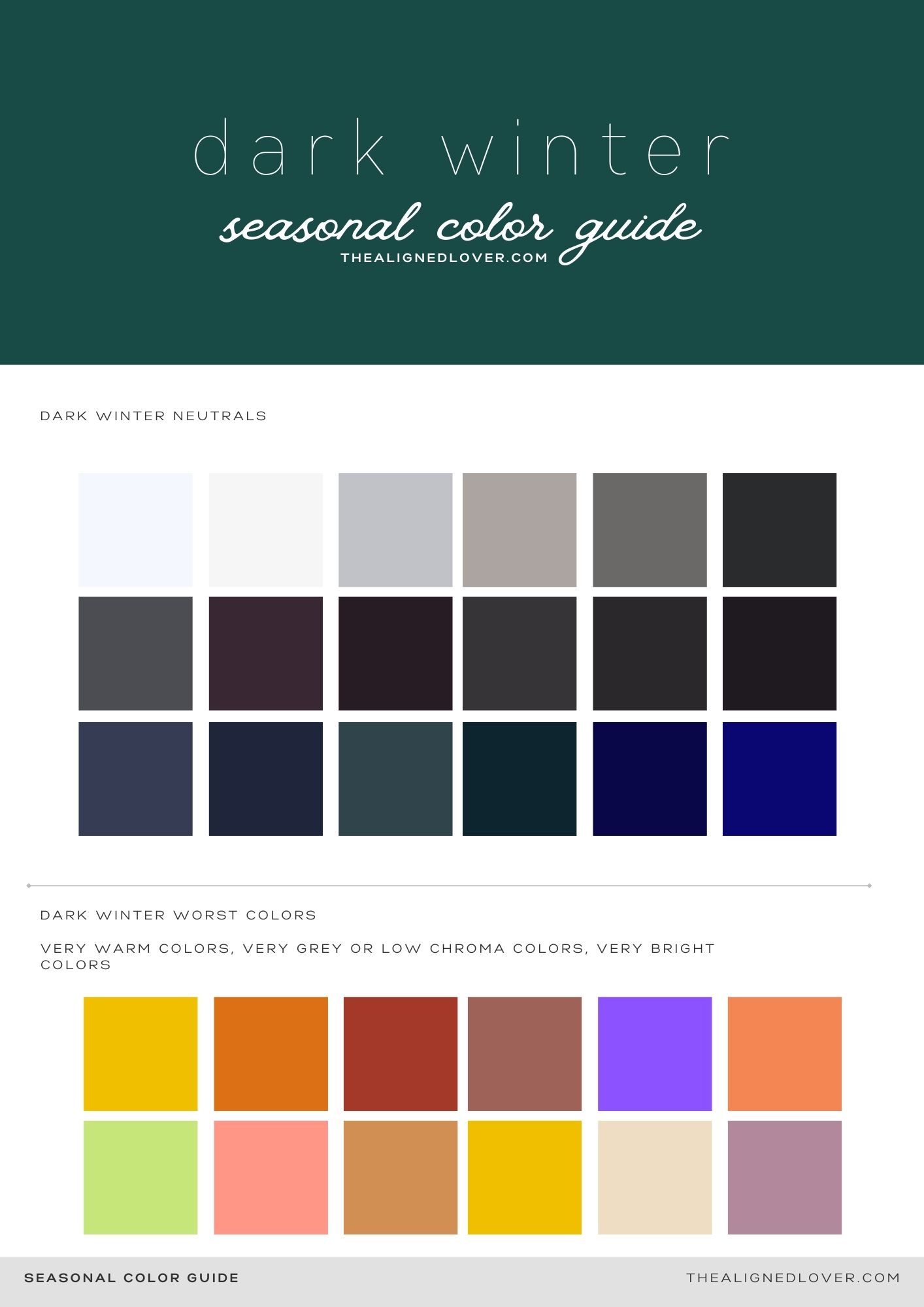 Dark-Winter-Seasonal-Color-Guide-1 Posted onOctober 4, 2022 Guide to the Dark Winter Seasonal Color Palette 1414 × 2000