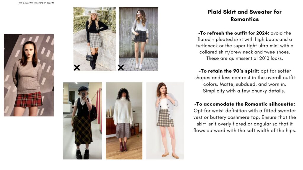 90’s Plaid Skirt and Sweater for the Kibbe Romantic
