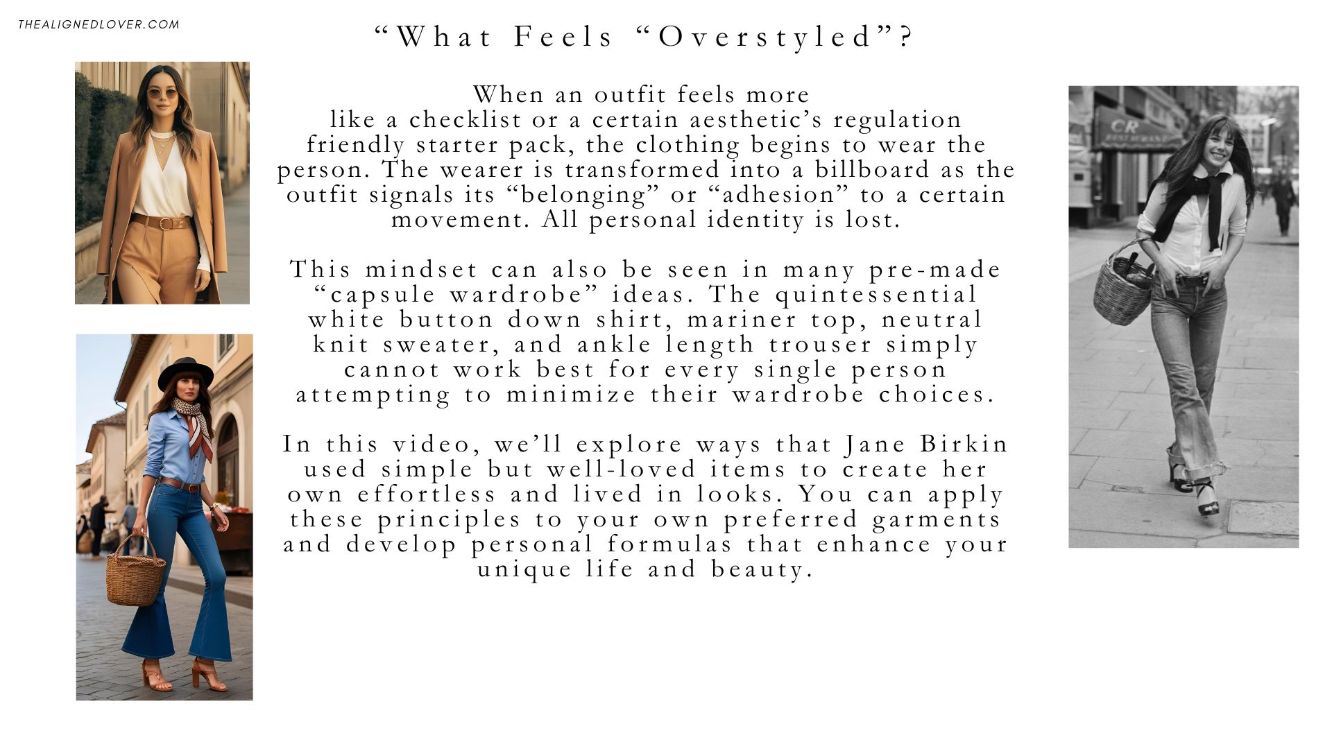 Hi everyone, welcome back to my channel! Today, I want to ask you a question: Is your style too curated? Is it overdone? I’m drawing lessons from the one and only Jane Birkin, the lovely undone muse.
