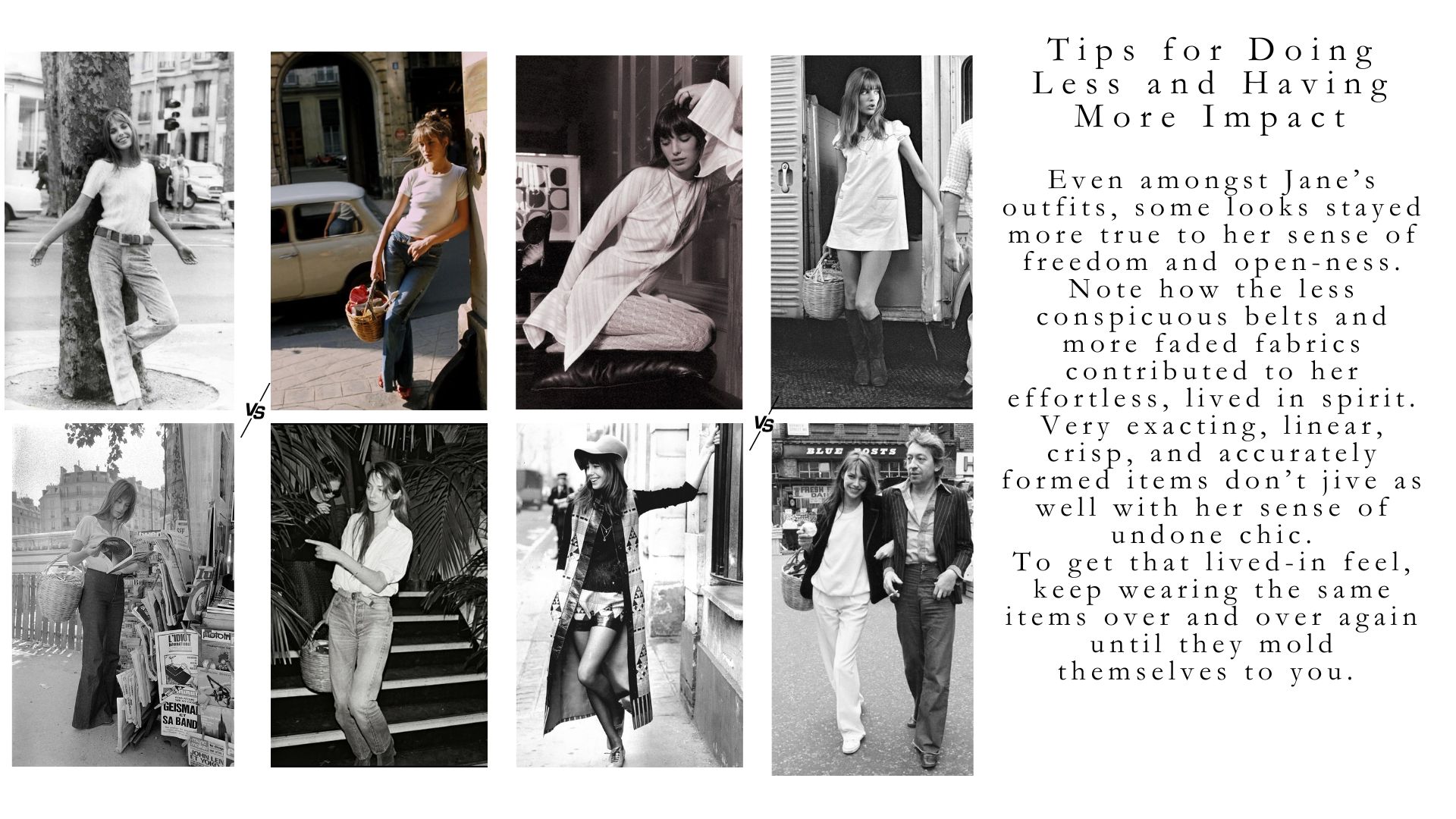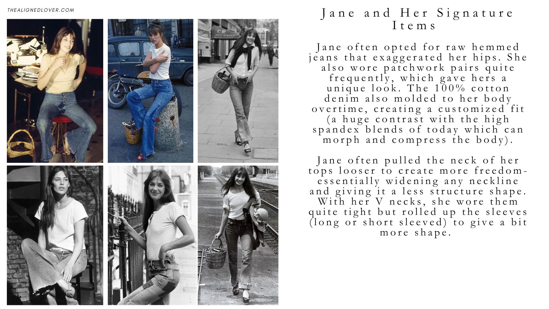 So how did Jane Birkin wear the simplest pieces in ways that felt so uniquely her? Let’s break it down.