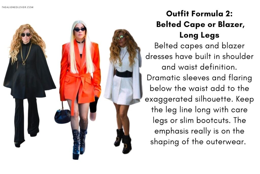 Outfit Formula #2: Belted Cape Blazer with Emphasized Leg Line