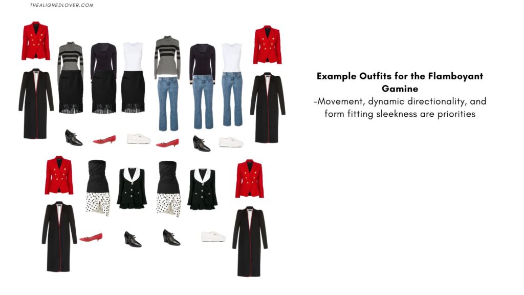 The key to building a Flamboyant Gamine capsule wardrobe lies in combining structure with versatility. Focus on pieces that emphasize sharp lines, unique patterns, and bold details. Don’t forget to adapt these tips to your personal style and preferences.