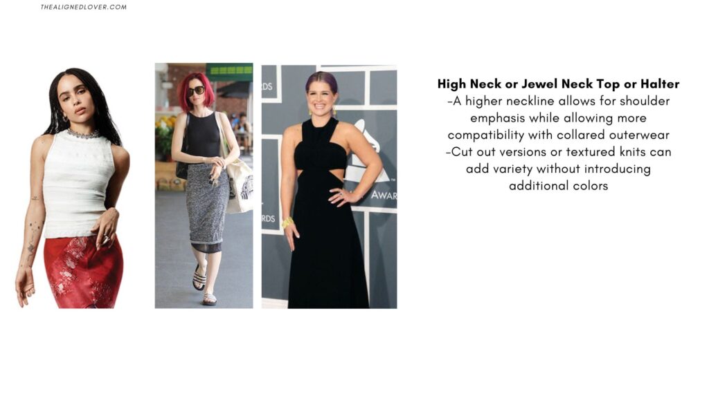 High-neck tops, jewel necks, and halters define sleek shoulder lines while being versatile enough to pair with collared outerwear. To keep your wardrobe cohesive without adding new colors, experiment with cutouts or textured knits. These details elevate simple designs, making them ideal for layering or standalone pieces.