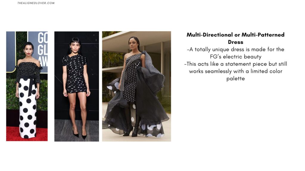 Flamboyant Gamines thrive with unique, multi-pattern dresses in their wardrobes. These statement pieces add variety and visual interest while staying true to the playful yet polished nature of the style. Keep the patterns cohesive for a refined look.