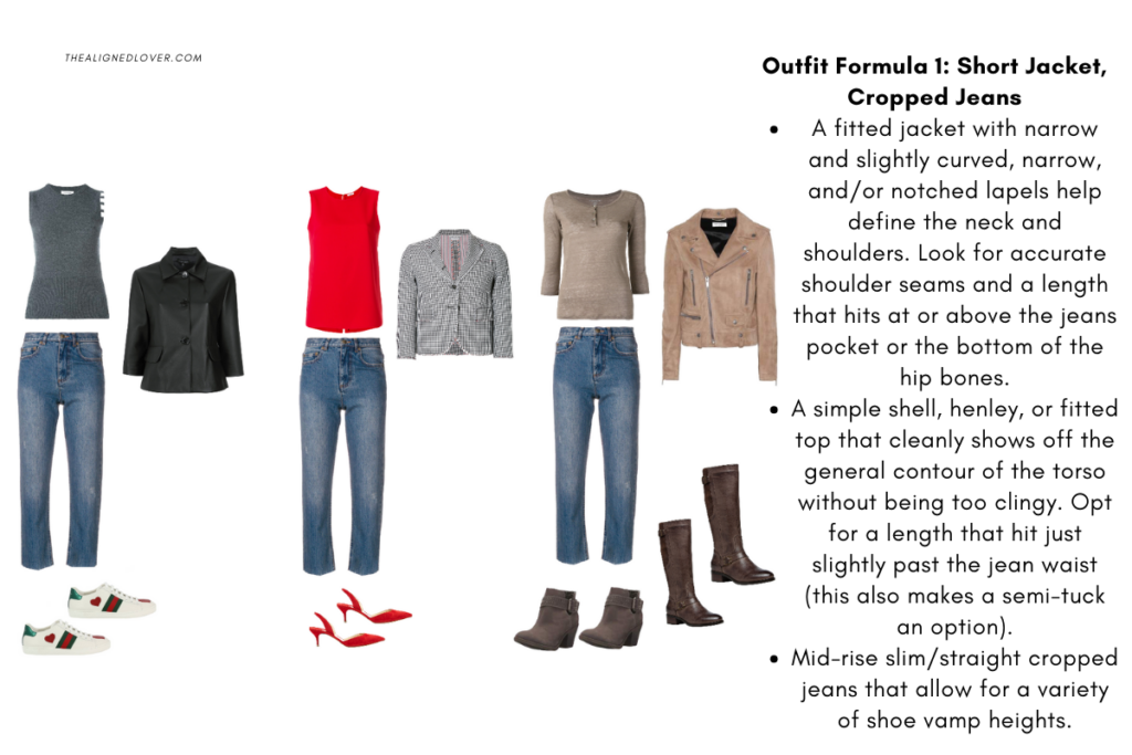 - Jacket: Opt for a cropped, fitted jacket with a narrower fit and shorter hem to define the torso and hips clearly.