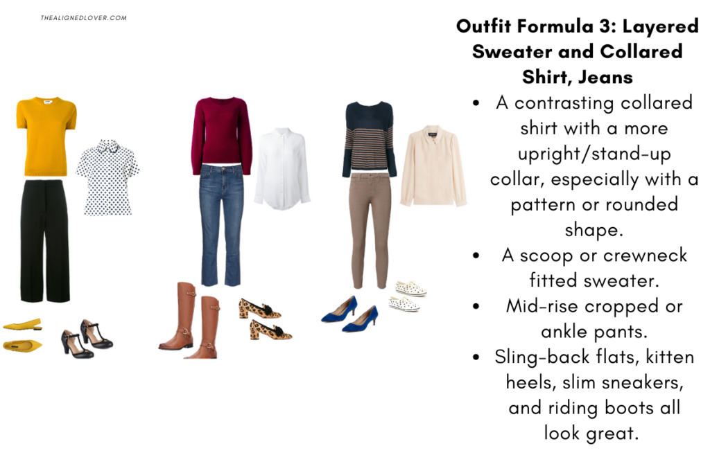 - Sweater and Collared Shirt: Layer a collared shirt underneath a sweater for a contrasting and perky look that emphasizes the face and neck.