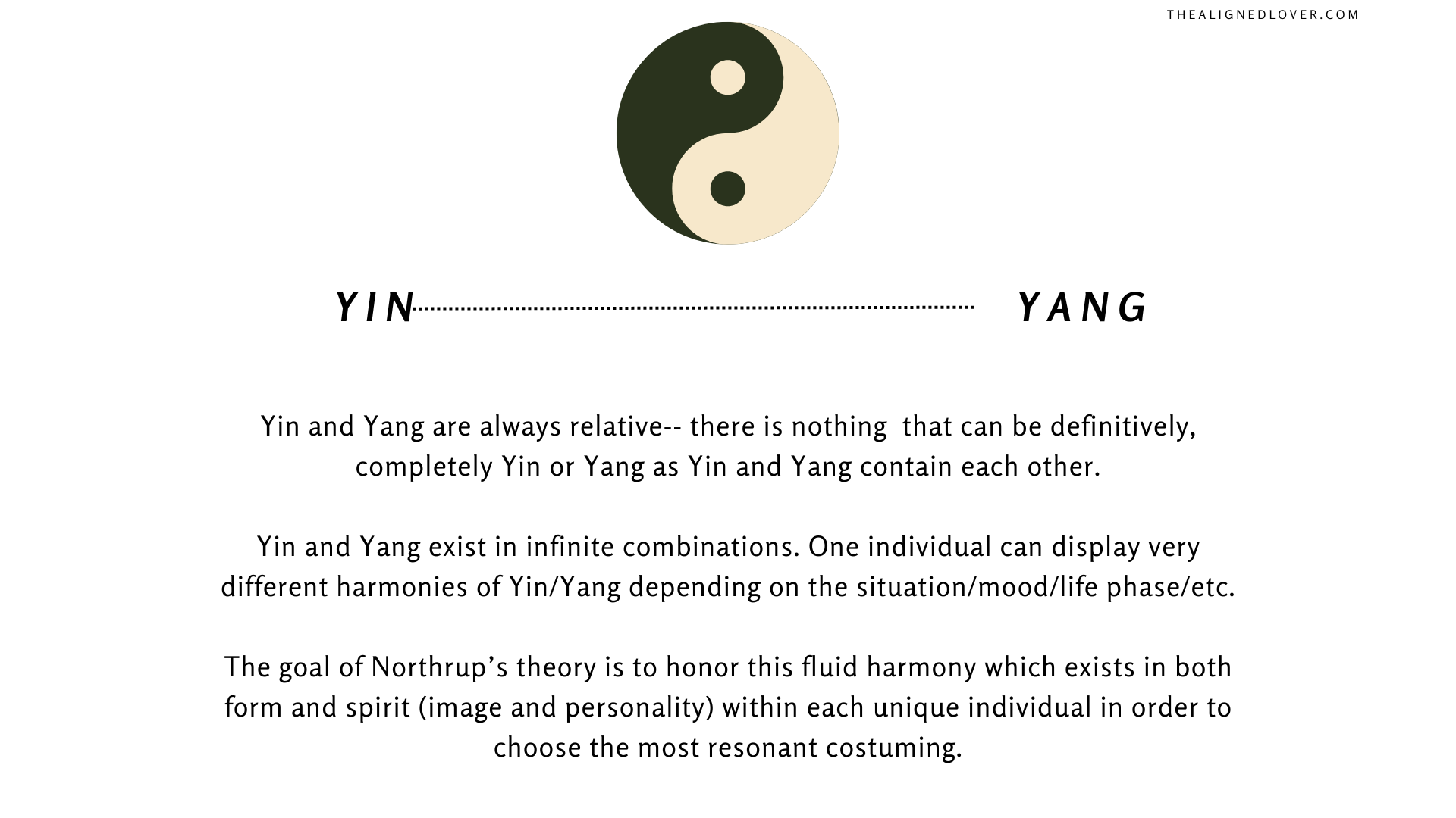 The most important takeaway is the principle of relativity and holistic harmony. Northrup taught that style appraisal must be holistic, recognizing that every individual is a unique blend of Yin and Yang, existing in infinite combinations. The goal is to select costumes that honor one’s essential personality or essence, not just a single physical trait.
